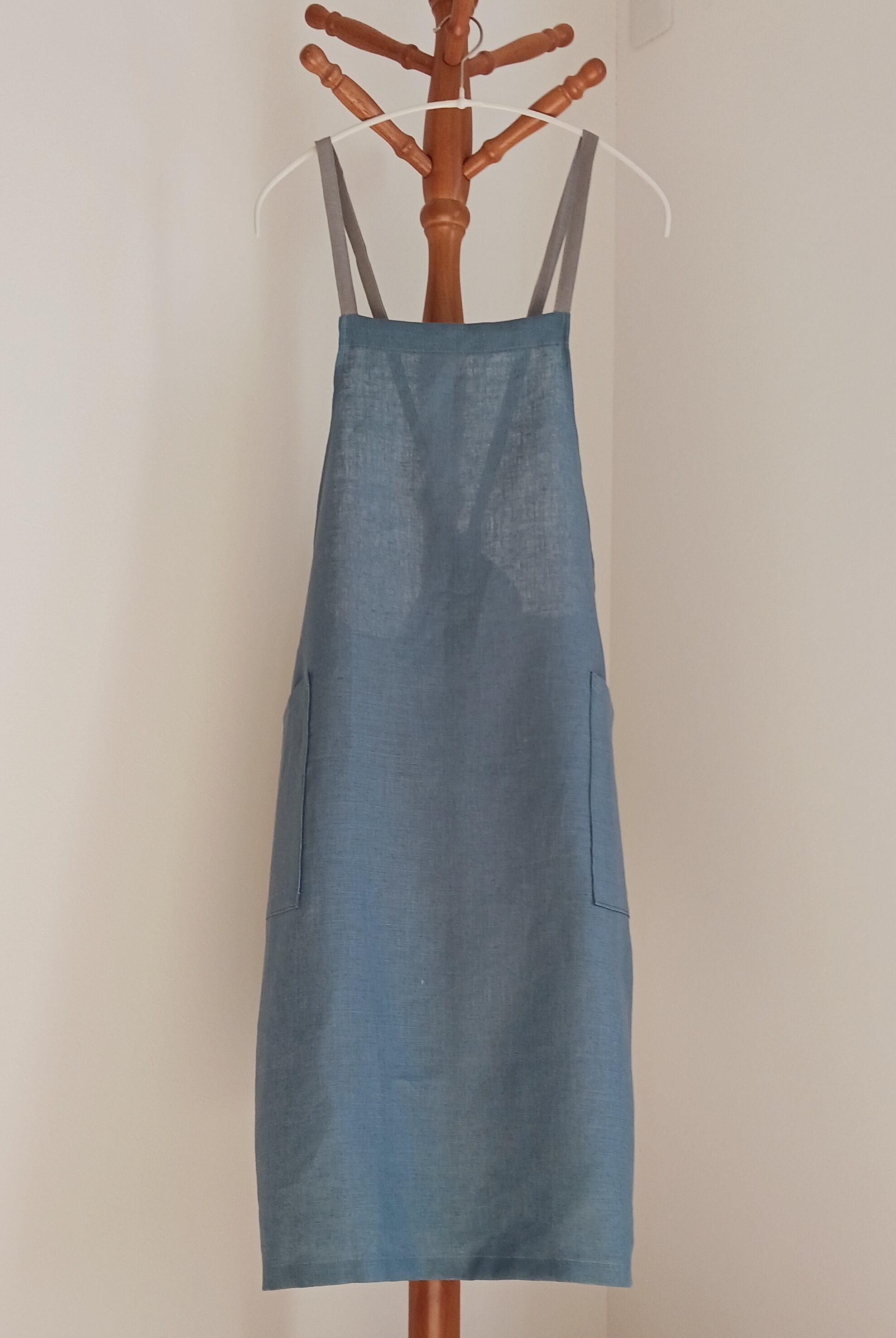落ち着いた爽やかなスモーキーが魅力のクロスリネンエプロン。